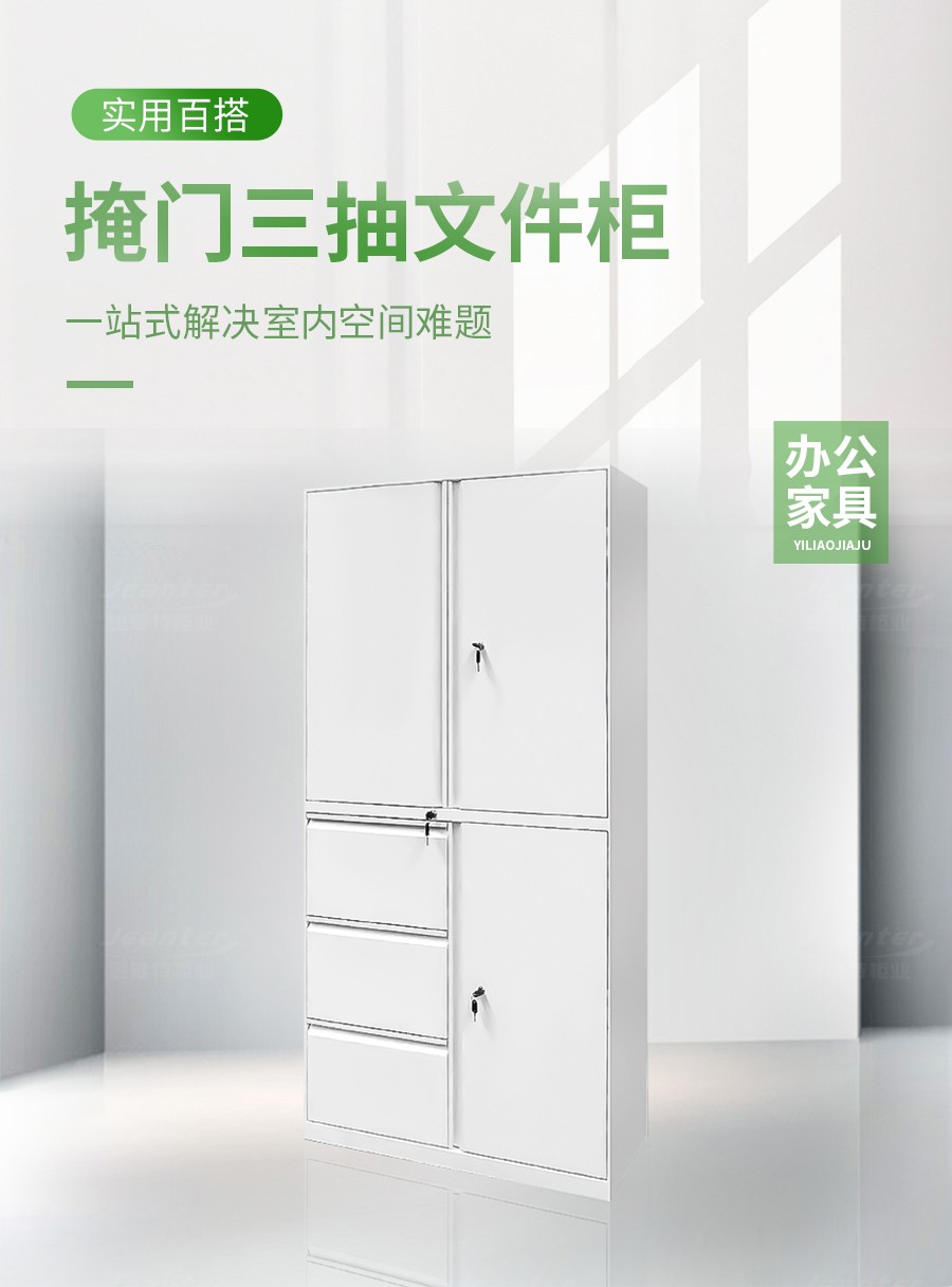 • 上下雙掩(yǎn)門左三抽文件櫃
